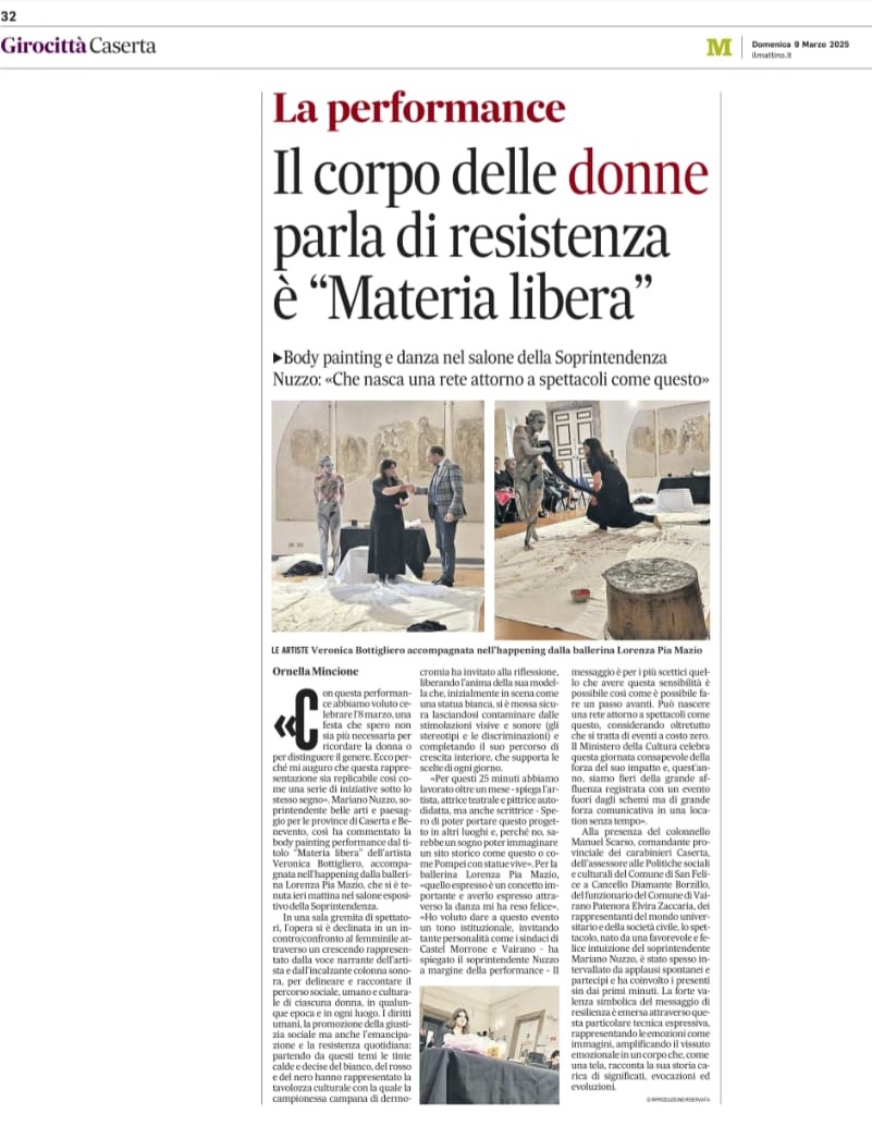 La Soprintendenza Archeologia belle arti e paesaggio per le province di Caserta e Benevento ha scelto di celebrare artisticamente la Giornata internazionale della donna, in un affollatissimo salone espositivo al terzo piano della Reggia, dando vita all’evento “Materia libera”