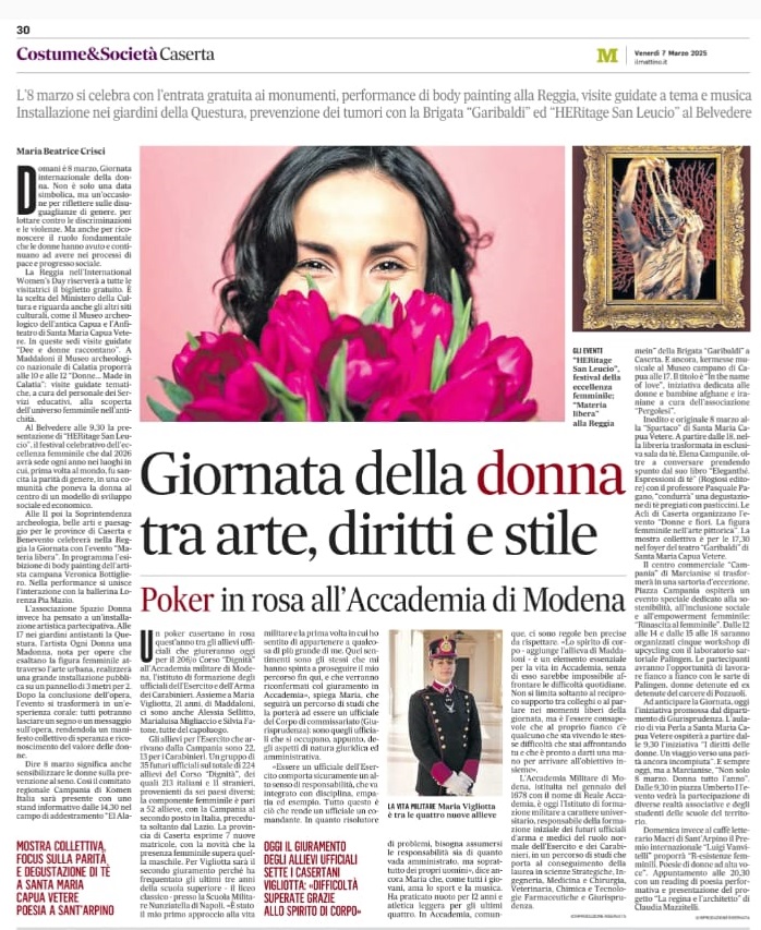 La Soprintendenza Archeologia belle arti e paesaggio per le province di Caserta e Benevento celebra la Giornata internazionale della donna con l’evento ”Materia Libera”