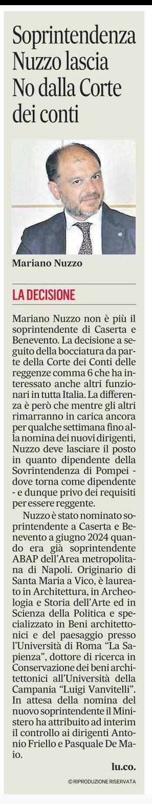 SANTA MARIA A VICO – Mariano Nuzzo riconfermato alla guida della Soprintendenza Archeologia, Belle Arti e Paesaggio per Caserta e Benevento