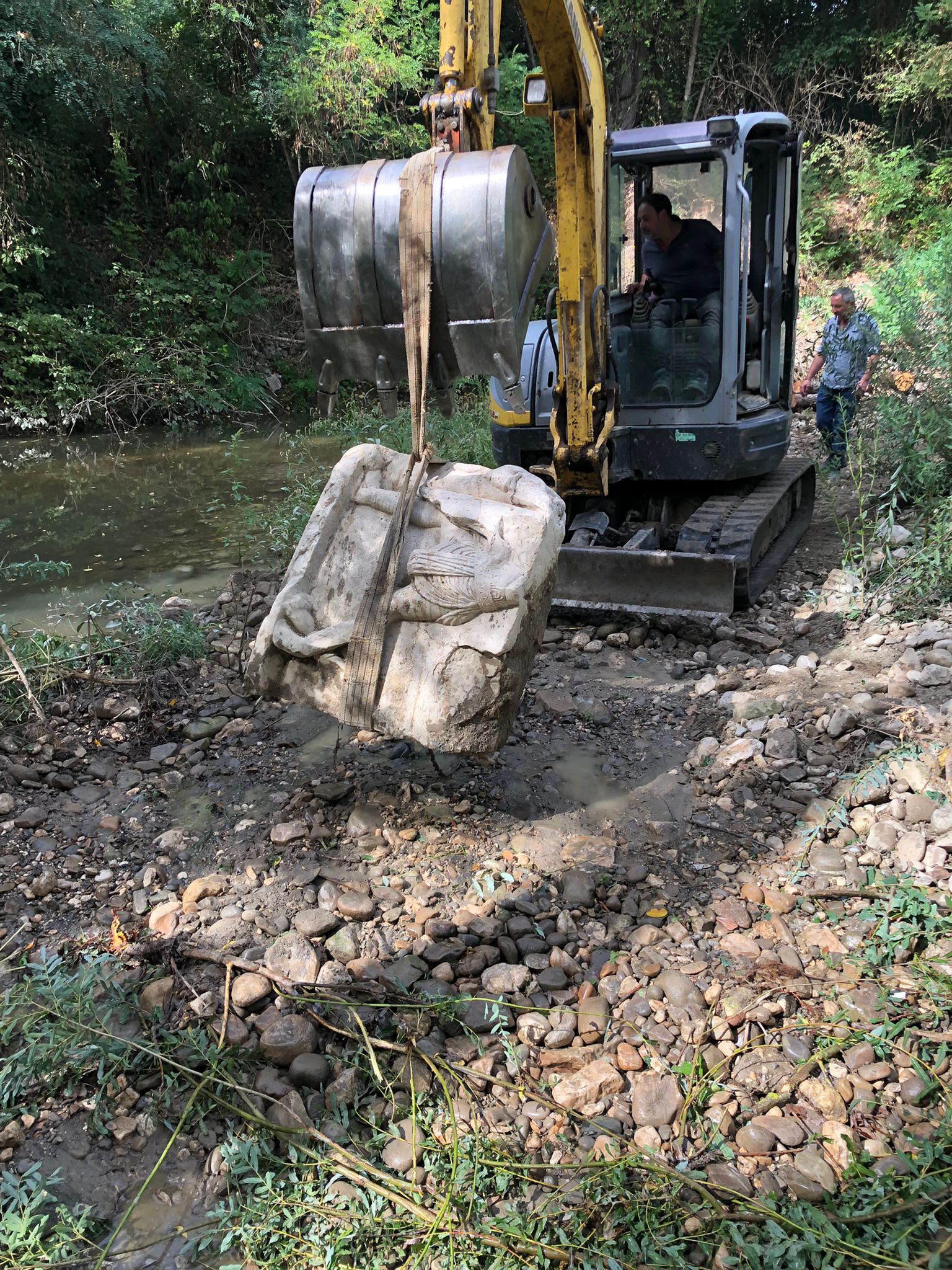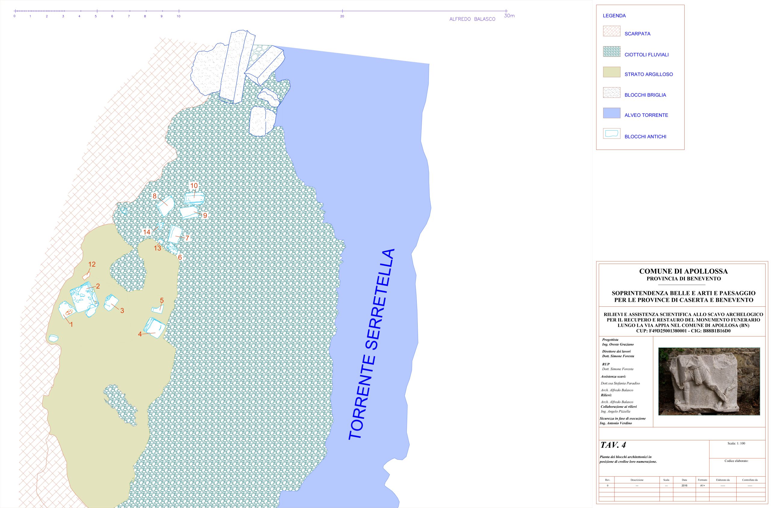 L’archeologo Simone Foresta, funzionario della Sabap per le province di Caserta e Benevento, responsabile del progetto di recupero del monumento, ha illustrato il lavoro svolto insieme al gruppo composto dall’archeologa Stefania Paradiso e dall’architetto Alfredo Balasco. Ha ringraziato la ditta Achille Lombardi e gli assistenti della Soprintendenza Giuseppe Marino e Paolo Parrella, ricordando le complesse operazioni avviate dopo l’esondazione del torrente Serretelle, che rese necessario il recupero in un solo giorno di circa venti blocchi lapidei. Il primo elemento studiato ha restituito la raffigurazione di un gladiatore sannita, databile su base stilistica all’inizio del I secolo d.C.